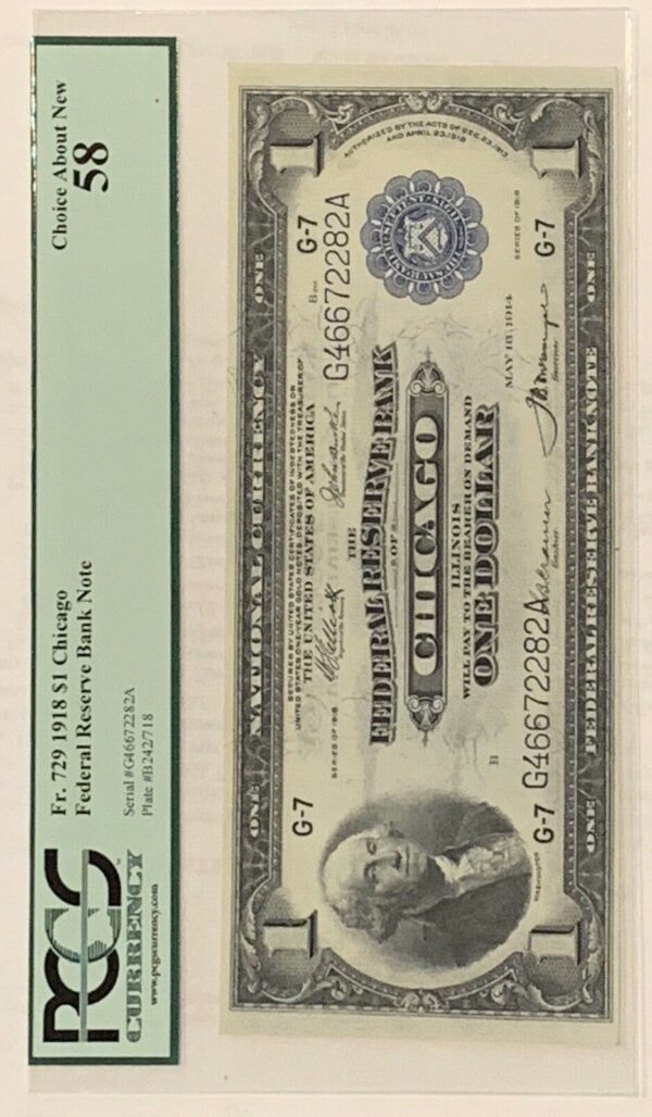 1918 $1 ONE DOLLAR (PCGS 58) Choice FEDERAL RESERVE BANK NOTE CHICAGO, IL.Beautiful large sized note.
