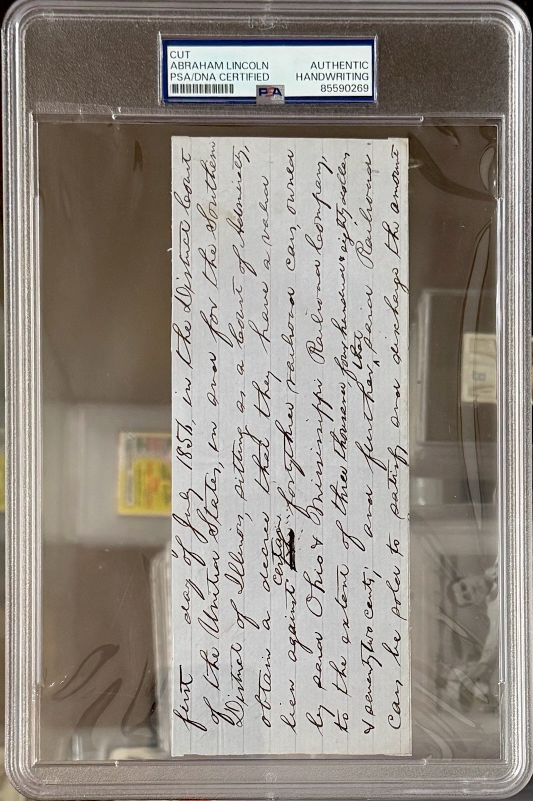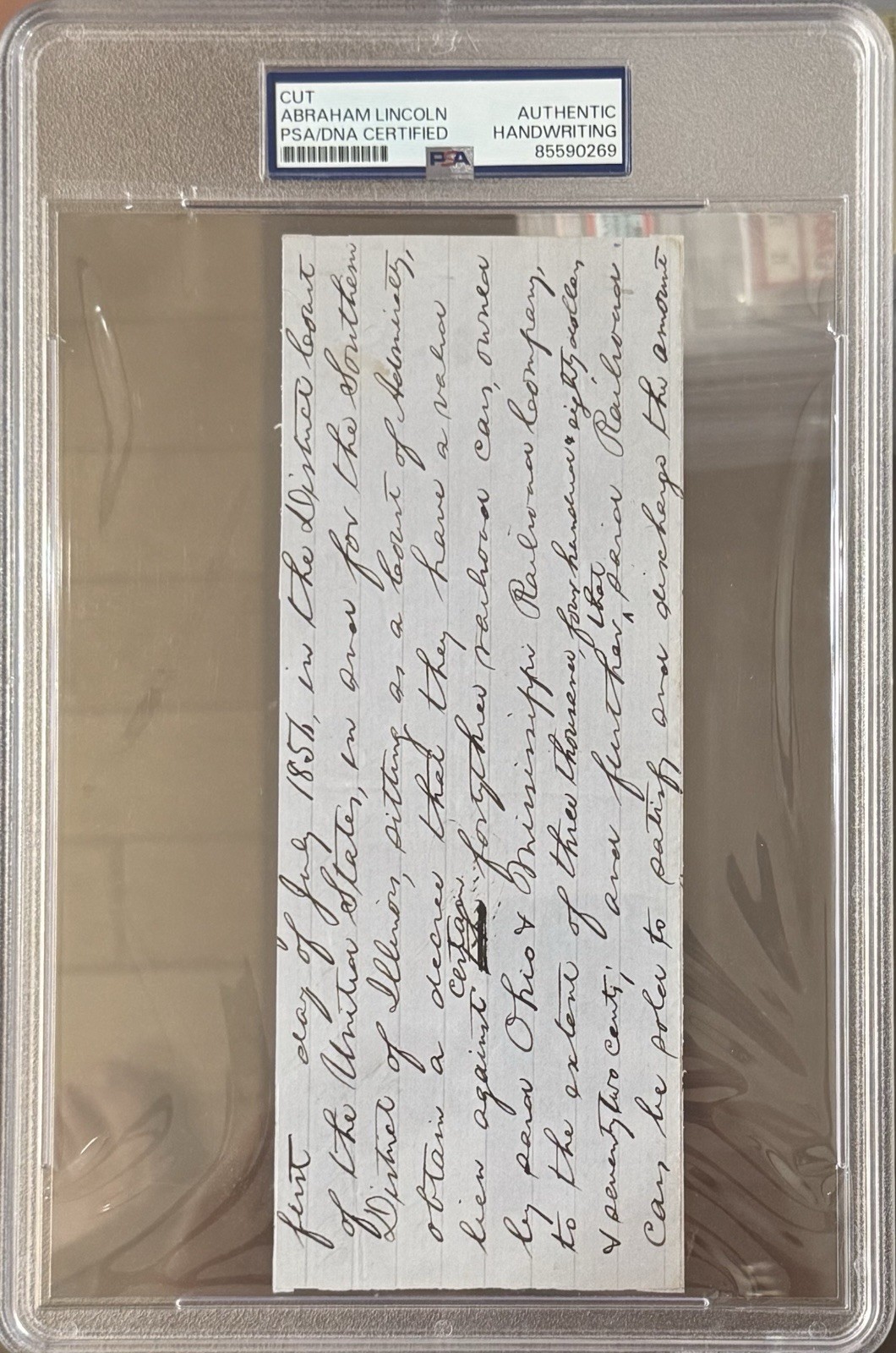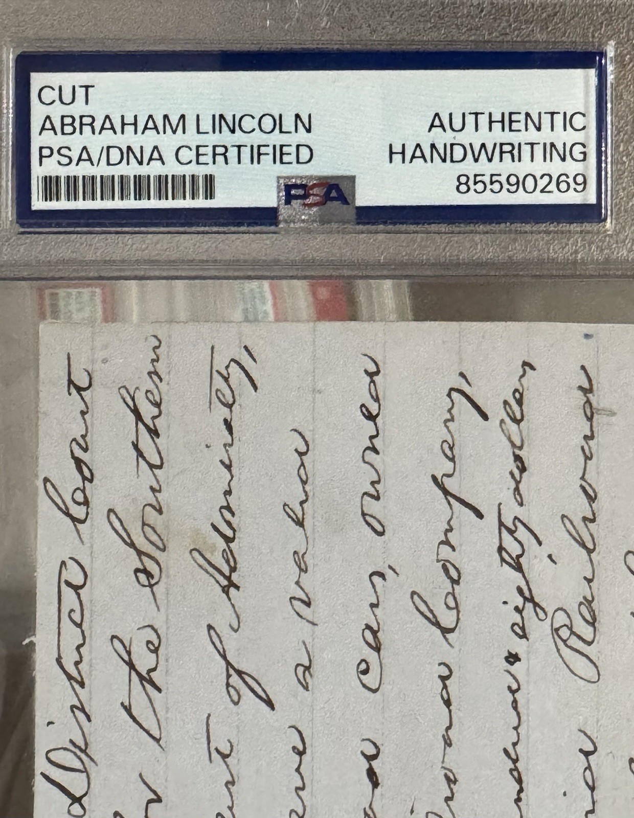 • Encapsulated with label stating: “Cut – Abraham Lincoln – Authentic Handwriting – PSA/DNA Certified”