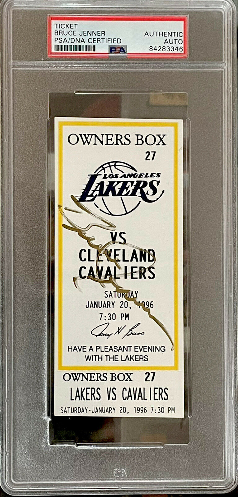 Bruce Jenner Signed Los Angeles Lakers / Jerry Buss Owners Box Ticket (PSA/DNA) Encapsulated 1996.