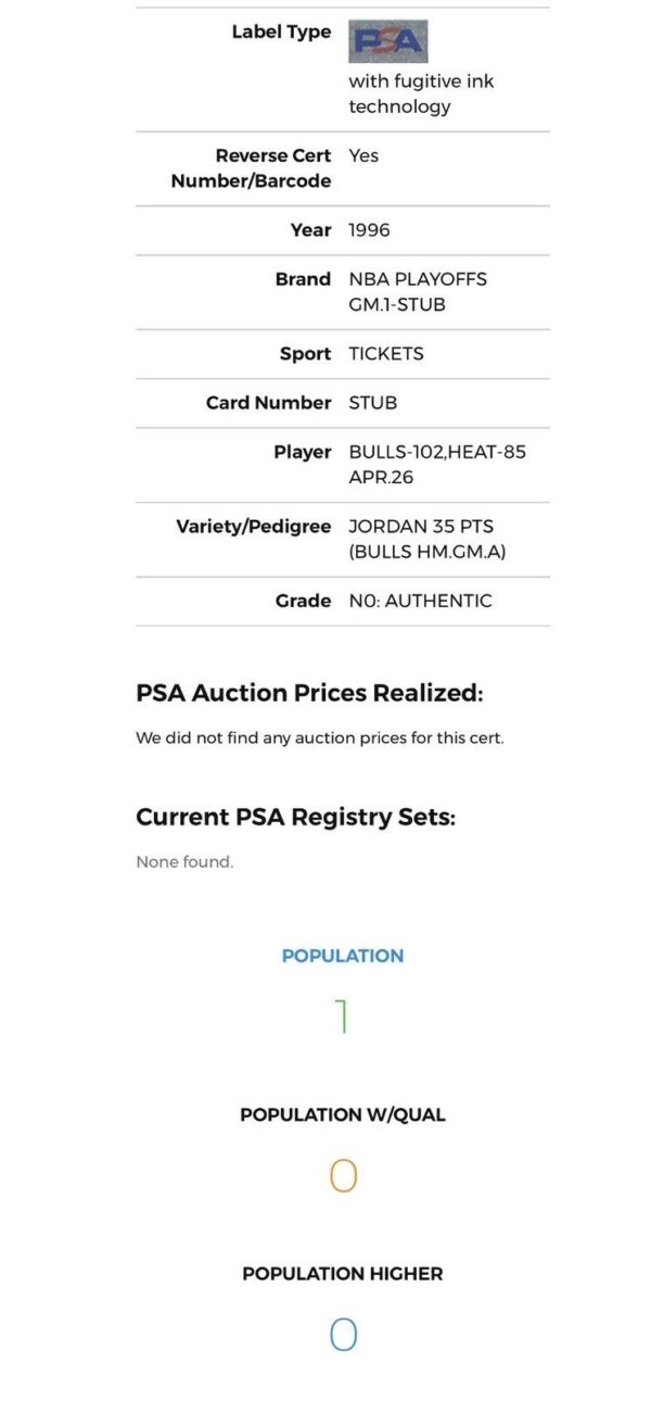 Chicago Bulls vs Miami Heat 1996 East Coast Finals. Graded Authentic (PSA) Only 1 In Population!
