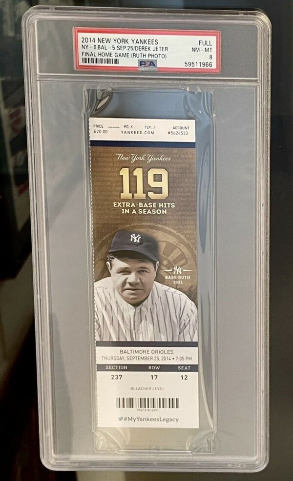 Derek Jeter Last Game (Babe Ruth) 2014 on FULL-Ticket PSA 8 NM-MINT. Only 1 in population according to PSA.