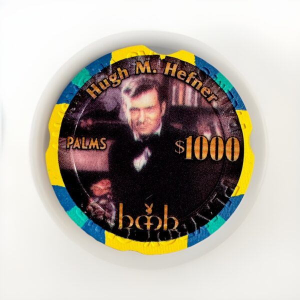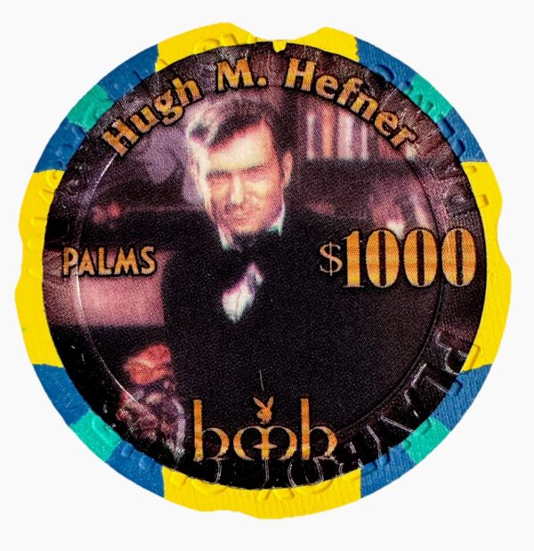 ULTRA-RARE $1000 casino chip from the Playboy Club at the Palms Casino Resort in Las Vegas, Nevada, featuring Hugh M. Hefner himself — the legendary founder of Playboy.