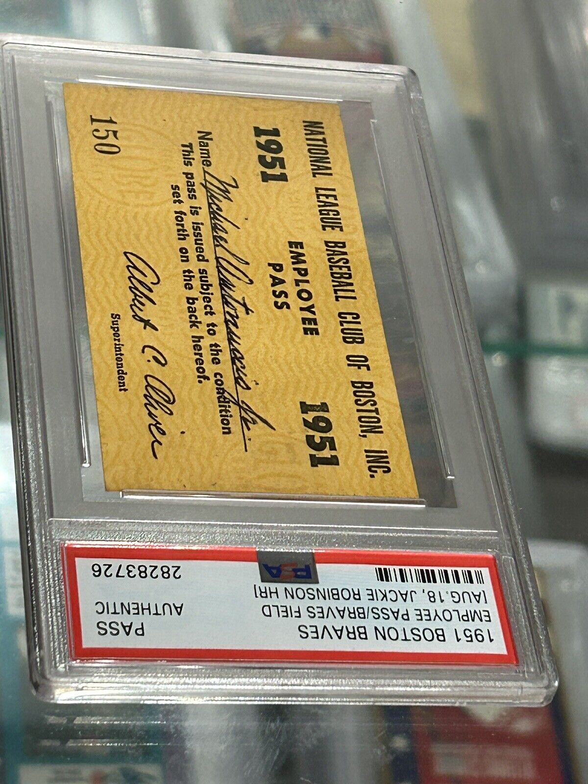 Jackie Robinson Home Run / Golden Ticket, PSA Encapsulated (1 of 1) VIP Employee Pass 1951.