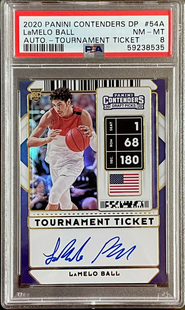 LaMelo Rookie (2/5) Auto Panini (PSA) N-MINT 8 Contenders Tournement Ticket. Investment Card, Rookie of the Year, future GOAT! Limited Edition numbered 2 out of 5 w/ signature.