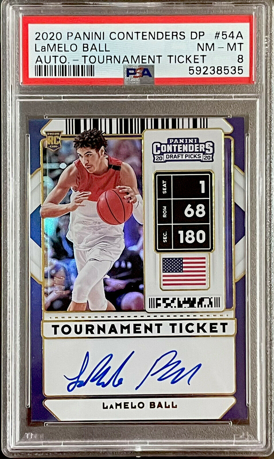 LaMelo Ball Rookie (2/5) Auto Panini (PSA) N-MINT 8 Contenders Tournament Ticket