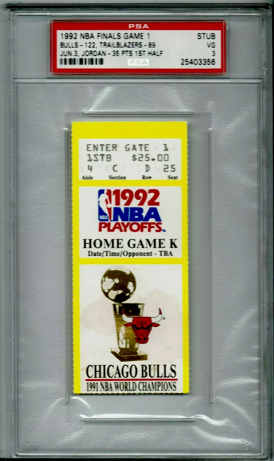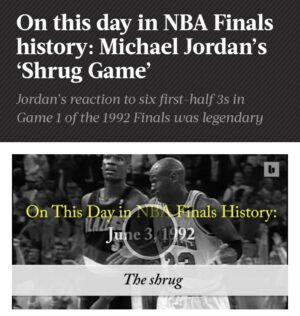 Michael Jordan 1992 NBA Finals (PSA) Authenticated Game 1 Ticket Stub, Air Jordan’s infamous “Shrug Game” Google it! He was an absolute assassin from behind the arc, scoring 35 points in the first half. Vintage Michael Jordan in his prime!