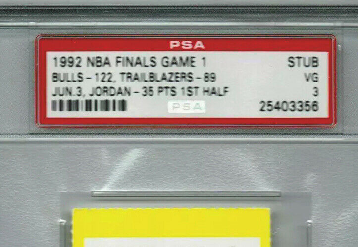 Michael Jordan NBA Finals (PSA) 1992 Game 1 Ticket Shrug Game 35 Points 1st 1/2