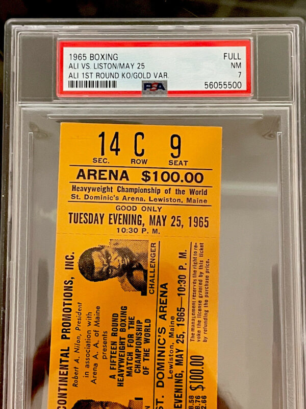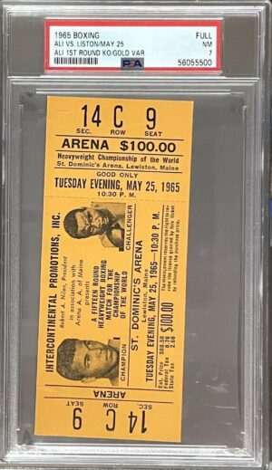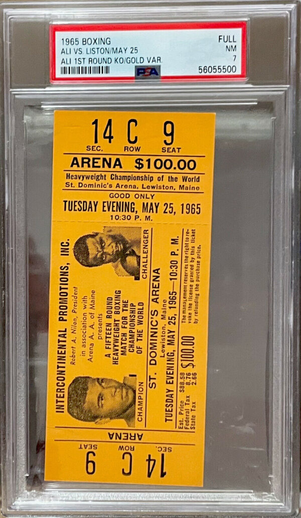 Muhammad Ali vs Sony Liston (PSA) 7 N-MINT 1st Round Knockout! 1965 Gold Ticket.