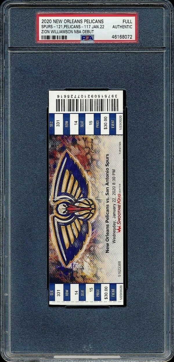 Zion Williamson Rookie Debut Full Ticket 1/22/20 (PSA) Authenticated.
